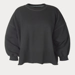 Rachel Comey's classic crewneck sweatshirt with drop shoulders, cropped sleeves, a raw edge hemline, and unique distressing throughout. Now in new seasonal colors and classic hues. Makes a great styling piece for any look.
