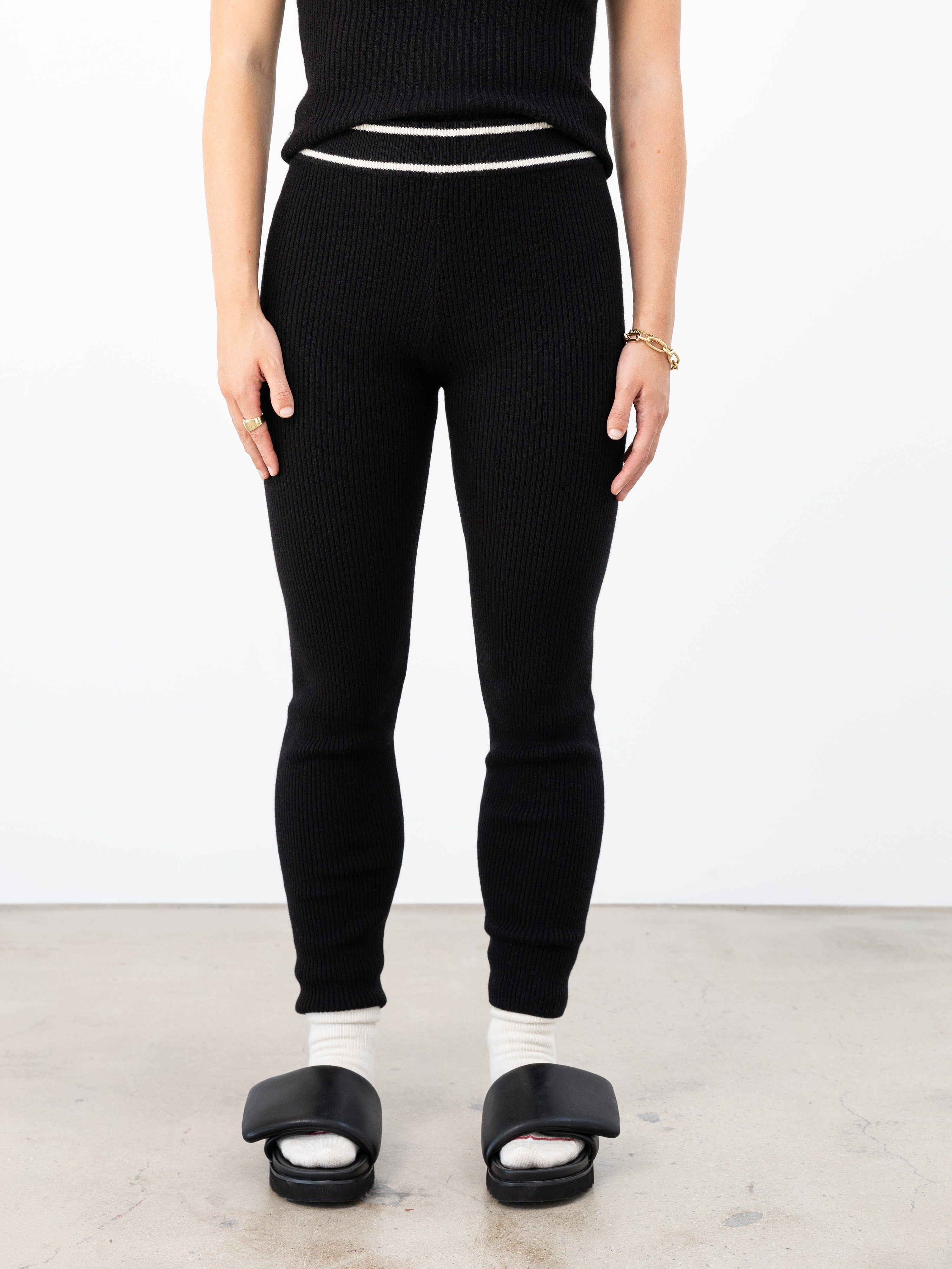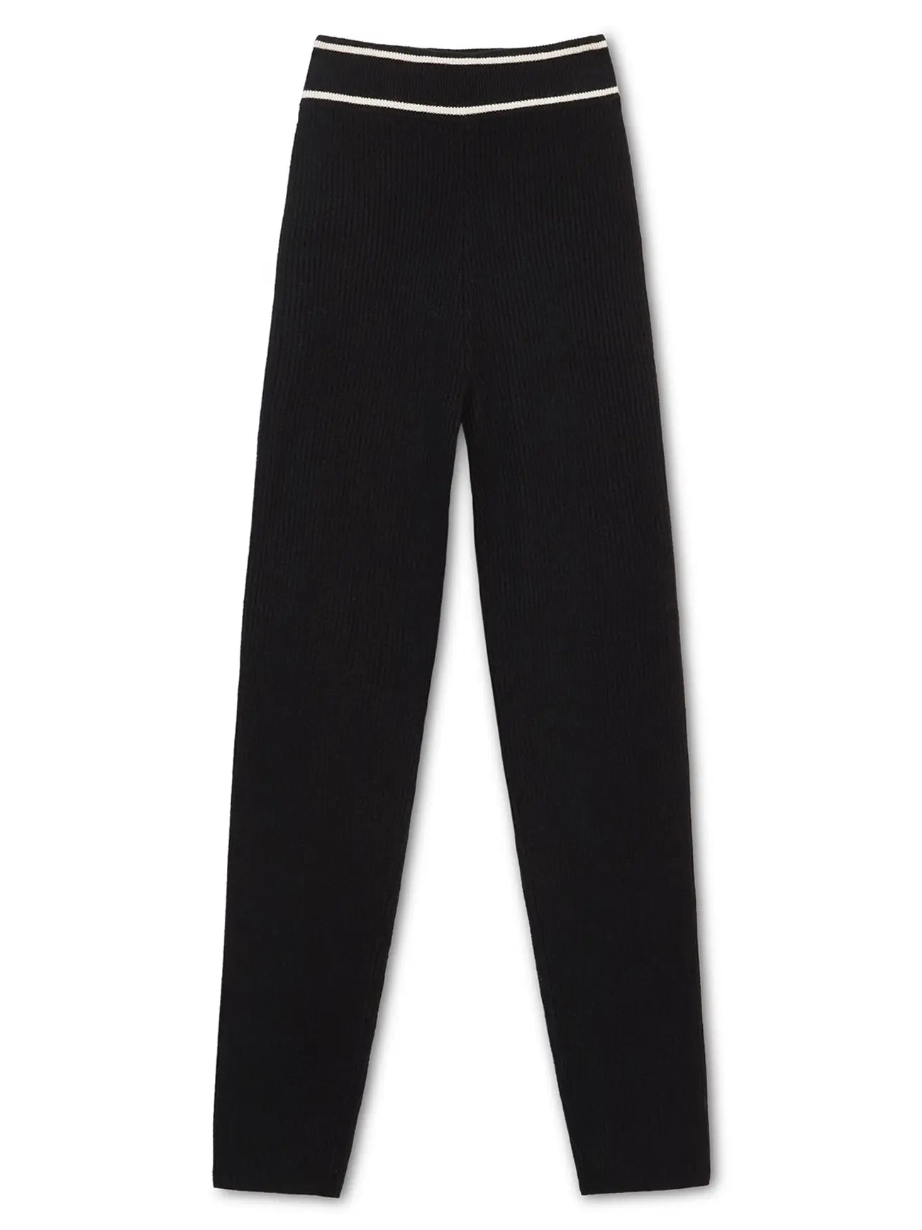 Maria Cashmere Ribbed Leggings - Black/Eco Paper Trim