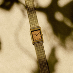 The Tethered Collection exists as a daily reminder of our human connection and our shared memories intertwined, endlessly collapsing together. The Virgil (Tethered) Small features a more compact 20mm rectangle case and is complemented by a silver brushed dial with a woven mesh bracelet that fastens with a quick-release clasp.