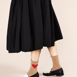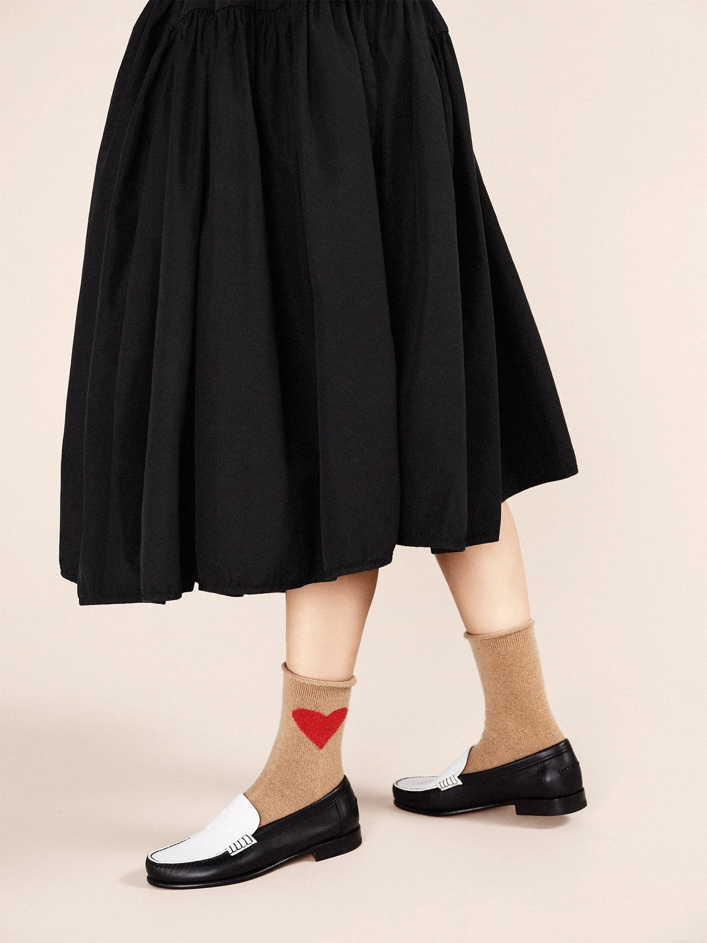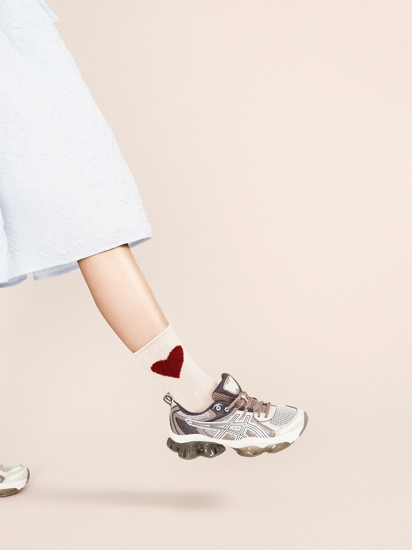 Please note that cashmere is a high quality yet delicate natural fiber and, as such, should be treated with extra care. As a fine gauge yarn, kindly be mindful that heavy friction can impact the wear and we recommend soft shoes to ensure the integrity of the socks.