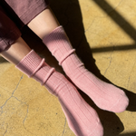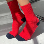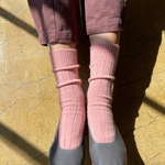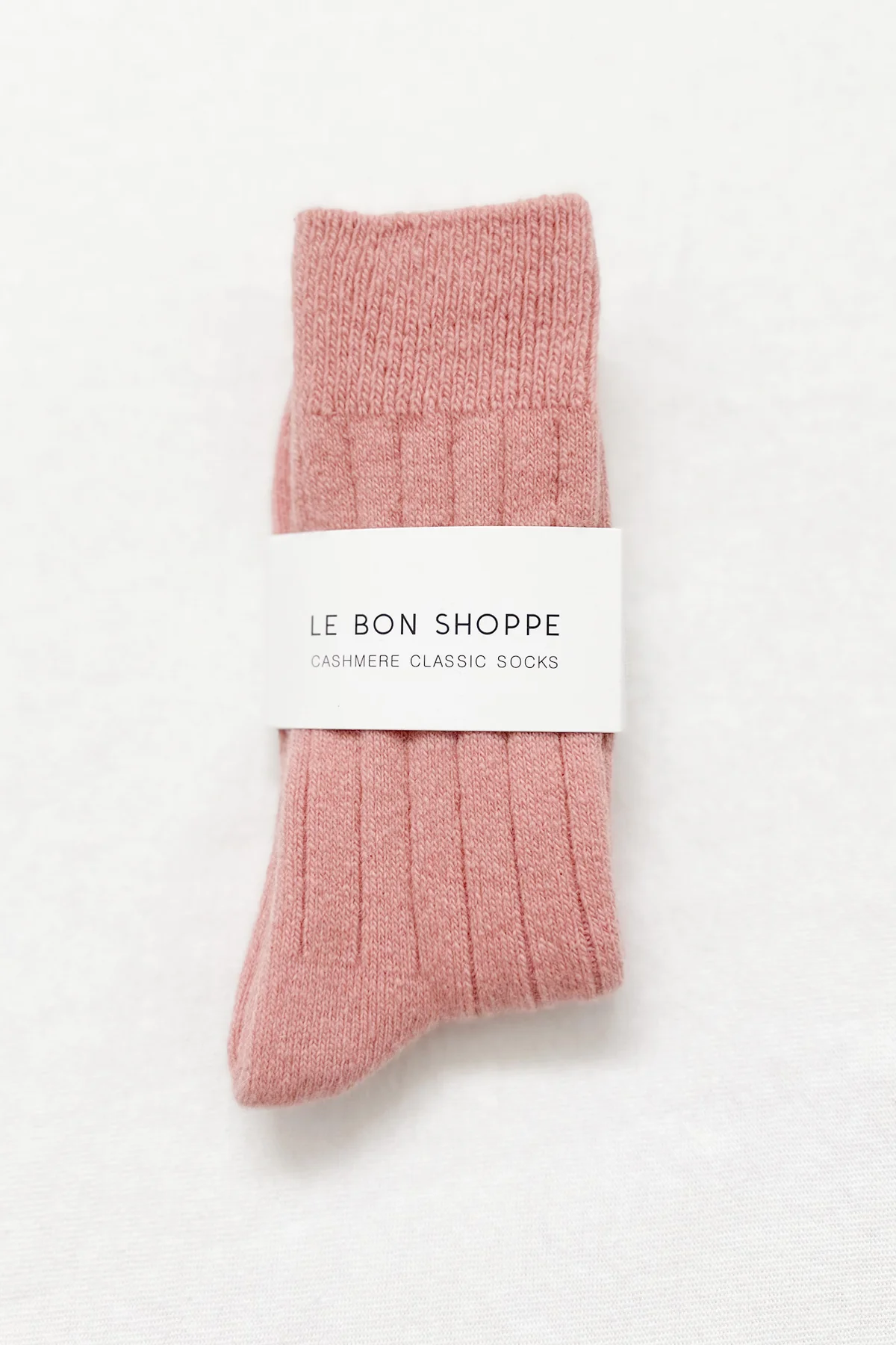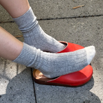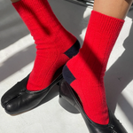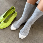 A vintage-esque Cashmere blended socks with a wide ribbing detail and tonal contrasting heel and toe. This elegant and classic sock will be your go-to gal during the colder season.