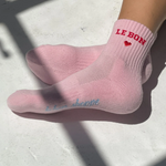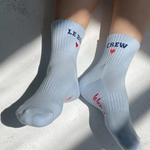 A love letter to your feet. Inspired by our best-selling Girlfriend Socks, this elevated pair brings the same cozy comfort you adore with an added touch of charm. A tiny embroidered heart on the side adds just the right amount of sweetness. Made with the same ultra-soft fabric and timeless fit you already know and love.