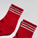 Say hello to the cutest crew socks to exist. Similar to the Boyfriend Socks, except with a short leg that fits true to the classic crew length. Under the classic triple contrast stripe sits an embroidered heart, adding the sweetest touch of affection to any outfit.
