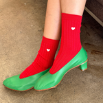She is the sock that will make you throw all your other socks away. Classically ribbed, perfect height, breathable cotton blend yarn. She will pair with any shoe, sandals, sneakers, mules, clogs, boots, she is your go to sock! The perfect height, knit rib socks.
