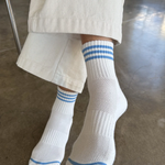 The Girlfriend Socks from our friends at Le Bon Shoppe is the crew version of their bestselling Boyfriend Socks; a short + sweet varsity sock in the dreamiest colors you can imagine. Pair with your favorite sneakers and rolled-up denim for an effortlessly cool look.