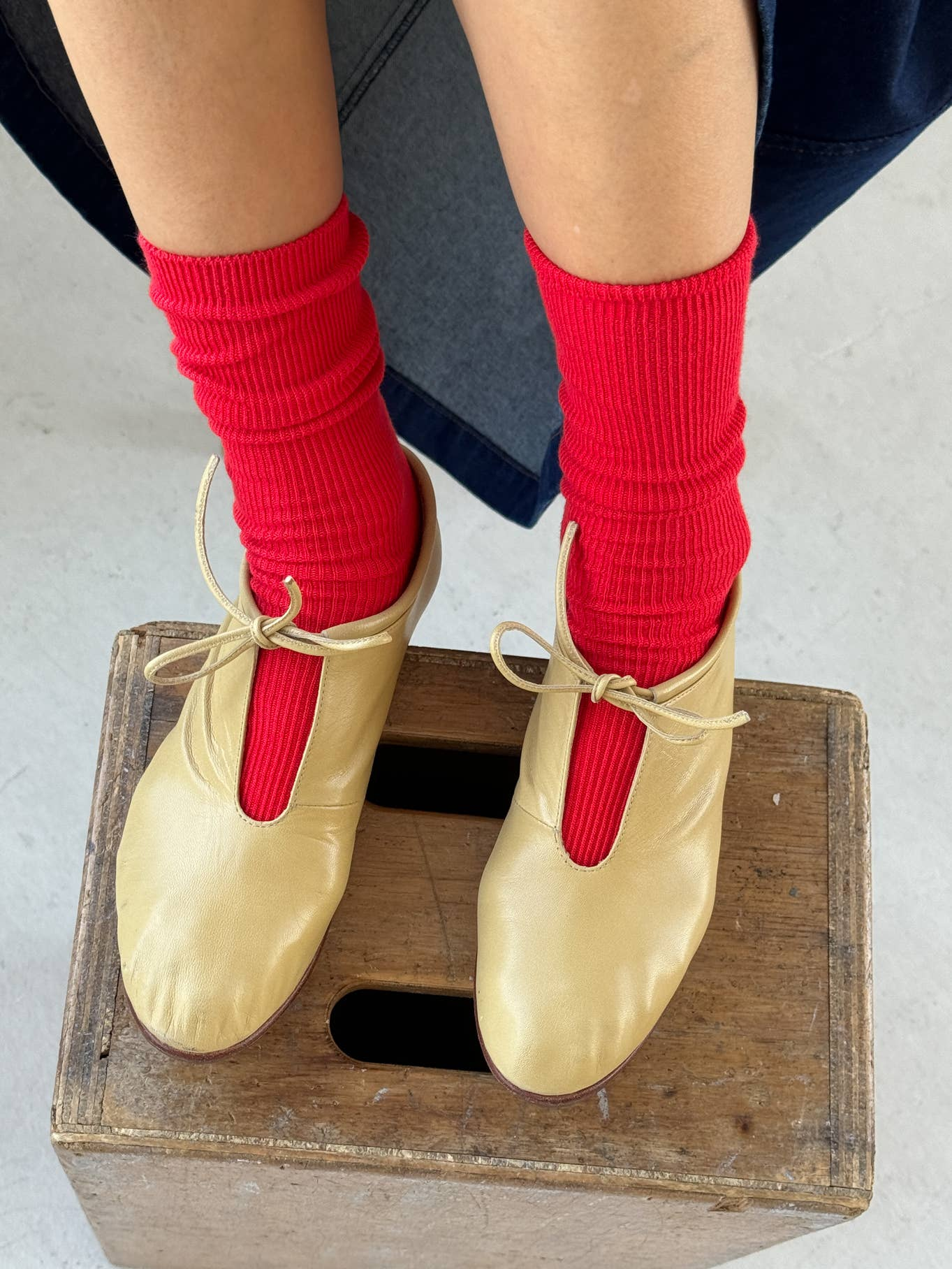 She is made from a soft, stretchy and breathable Modal blend and has enough length to give calf coverage under boots! We love to pair her with glove boots, mules and pumps!