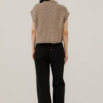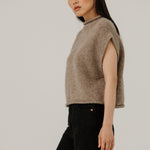 A key piece for outfit building, the Iris Vest showcases an effortless silhouette with rolled trim detailing and a cozy mock-neck collar. Its minimalist design and boxy fit make it perfect for layering with any outfit.