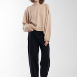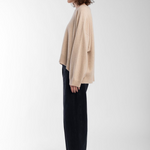 Soft, luxurious mid weight cashmere sweater featuring a saddle sleeve and high low back with side slits.