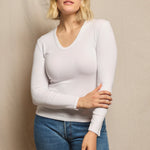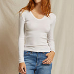 We've upped our game for fall and added this sexy, slinky, cotton rib that works for every body type. made from 90 cotton/10... an ultra deep u-neck and only in the most elevated colors, black and sugar, perfect for date night.