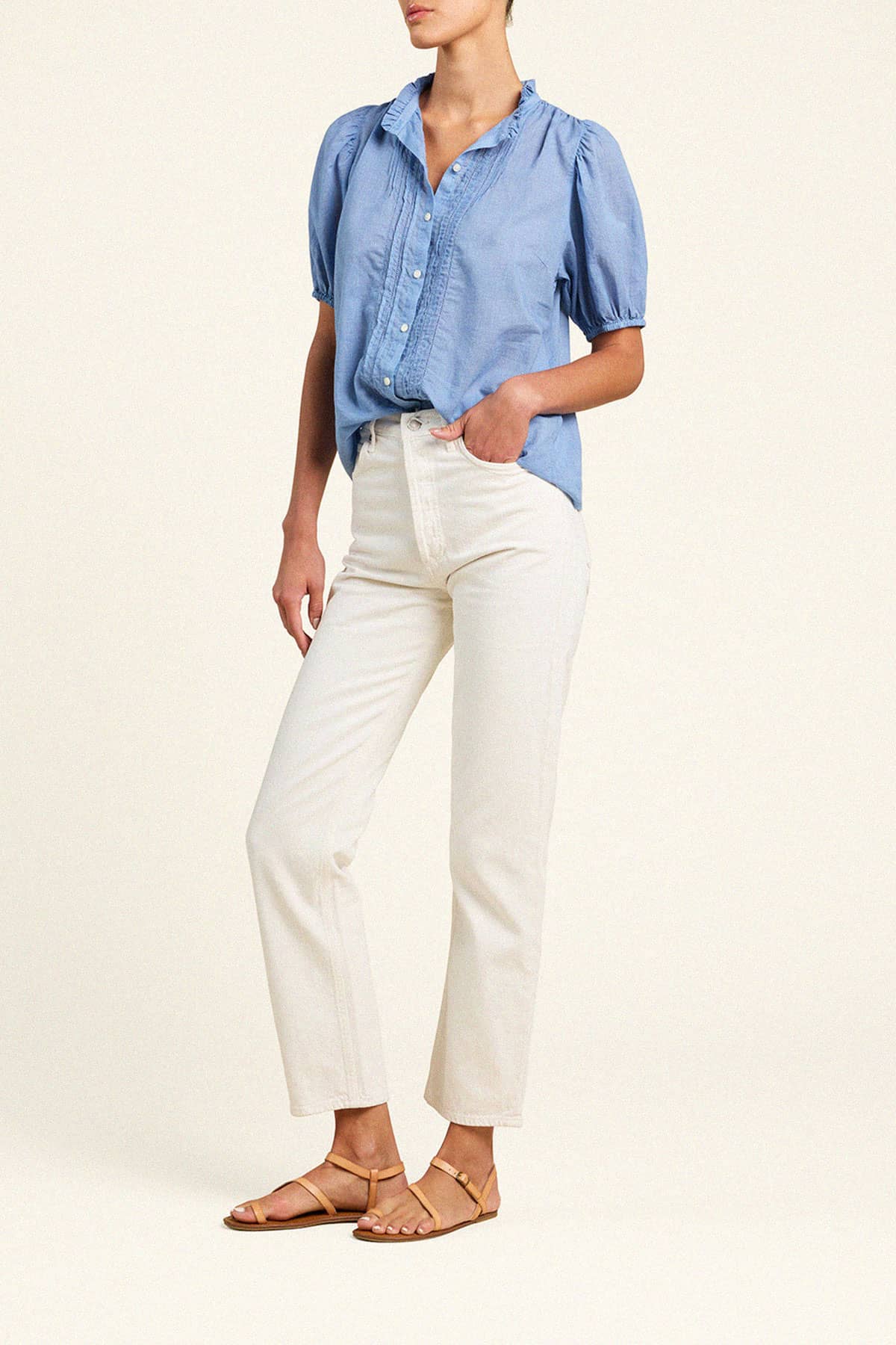 The Mira Blouse is a short-puff sleeved blouse with a flattering straight hemline and petite pintucks that lend texture and hand crafted charm. Slightly cropped length keeps this blouse airy and whimsical. Shown here in Brisa Houndstooth and made from cotton voile.