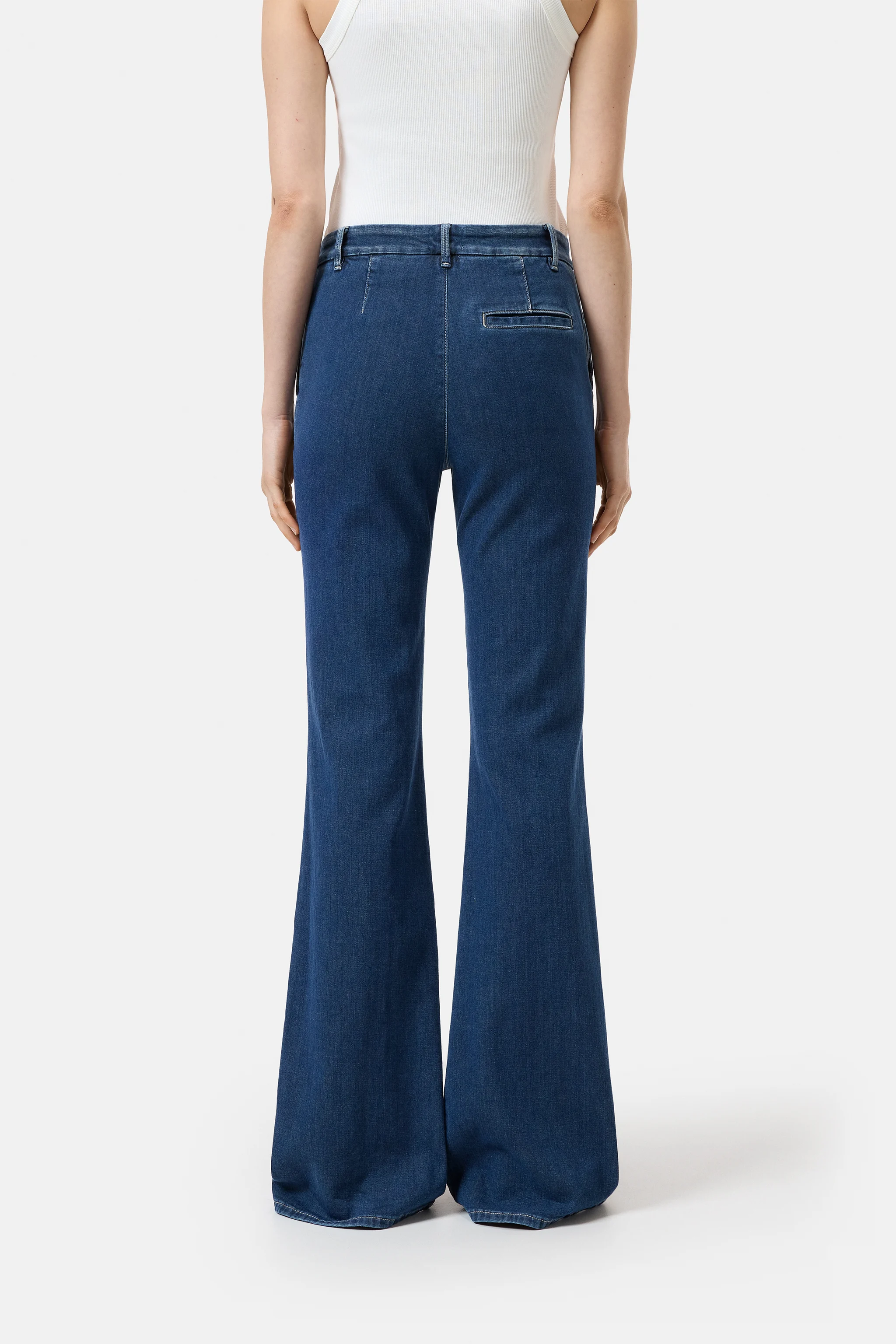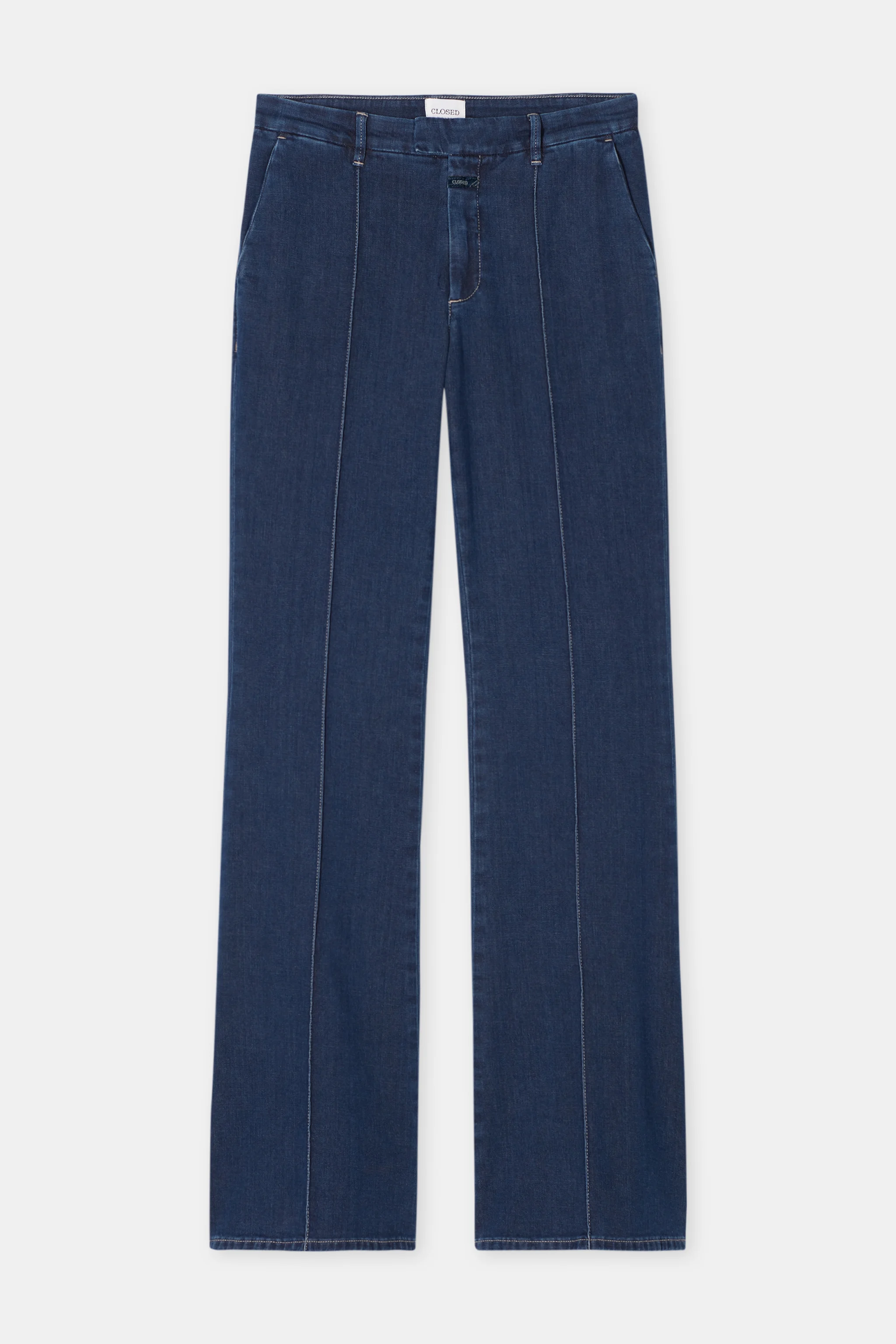 Part of our eco-friendly A BETTER BLUE denim line: Our flared-fit jeans with a wide leg, distinctive pleat seams, and a welt pocket on the back. Woven from lightweight Italian Cashmere Touch Stretch Denim (10 oz.) with a left-hand weave by Candiani.