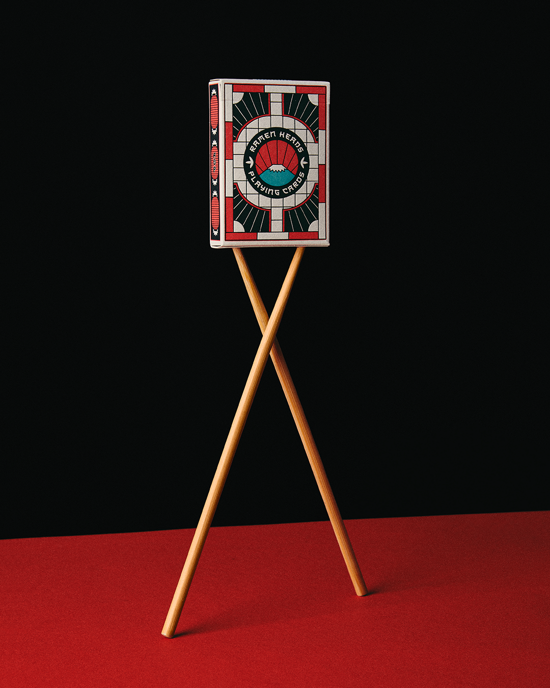 Who doesn't love a bowl of Ramen? Initially produced for our 2022 annual Mystery Deck promotion, this unique deck is now available exclusively in our catalog. We worked closely with illustrator Jannik Stegen to create a custom ramen-themed deck of playing cards. Inspired by vintage Japanese graphic design, this unique deck features twelve custom court cards depicting playful characters from Japan's vibrant history, such as; Godzilla, a toy robot, a sumo wrestler, and a samurai, to name a few of the sixteen original characters, all of whom are eating ramen, of course.