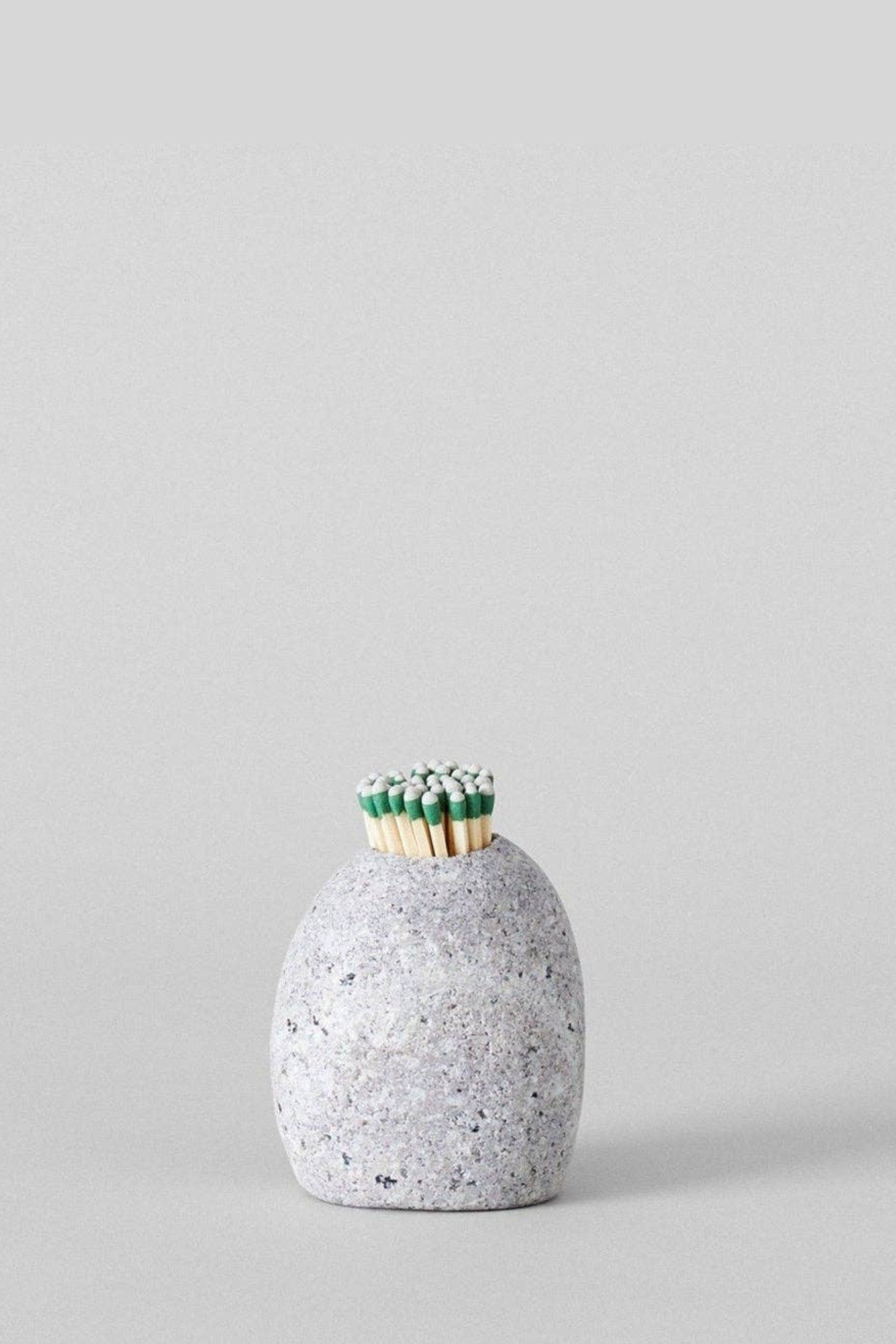 Crafted in Maine, these hand-drilled match strikers are made from stones collected on riverbanks and beaches in coastal New England.