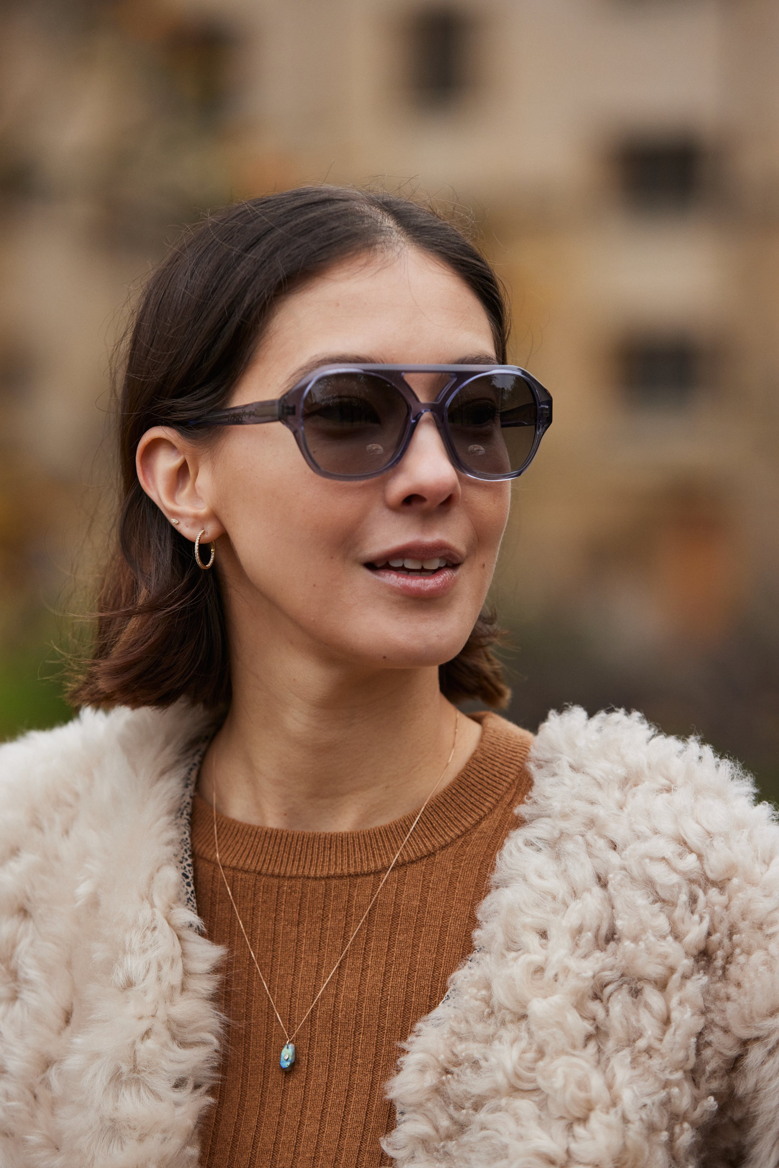 A modern aviator frame rendered fully in Italian acetate named after Eva Masaki’s mother Chiyo, who came of age as a Japanese woman living in America in the 1960s and 70s.