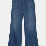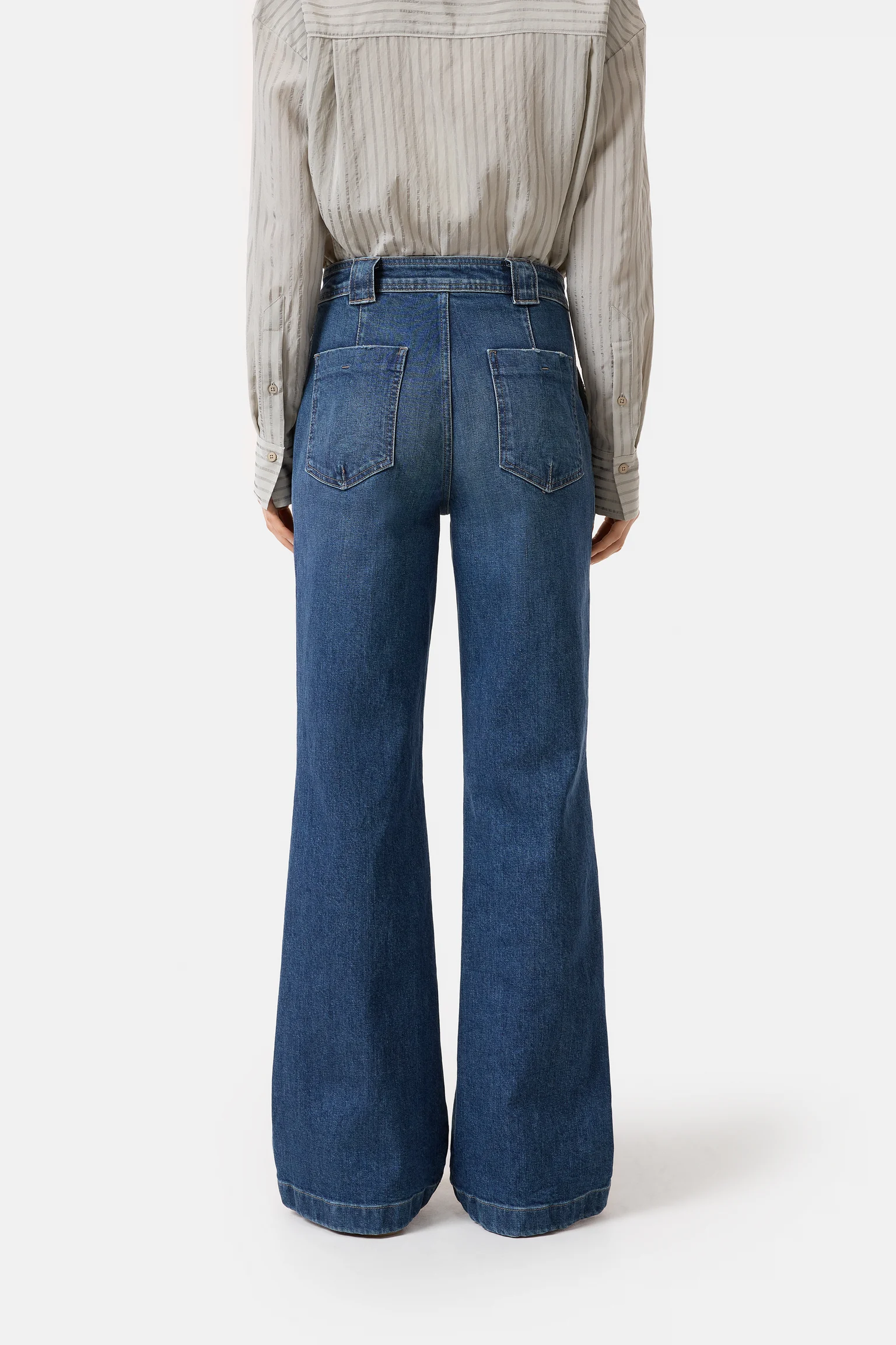 Made in Italy from premium Candiani denim with regenerative cotton and degradable stretch yarn (ROICA™ V550), the Aria jeans feature a high waist, flared leg and patch pockets on the front. The denim looks like an authentic rigid denim, while it feels super comfortable thanks to the stretch content.