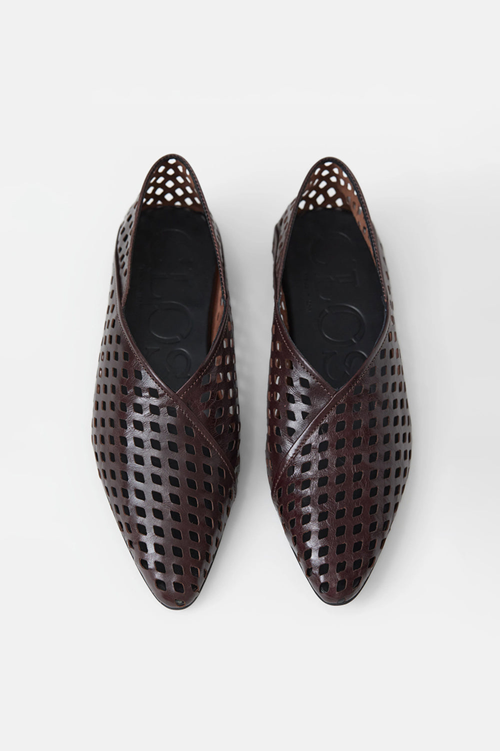 Contemporary ballerina design is made of perforated leather, crafted in Italy from smooth leather with exceptional attention to detail. These airy flats come with a soft goat leather insole, making them a perfect blend of style and comfort.