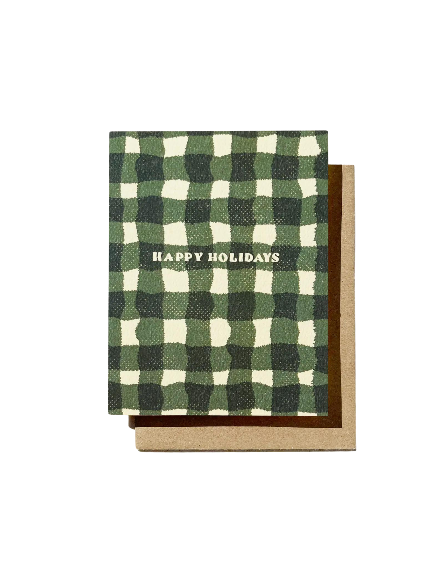 Merry Christmas - a classic plaid Holiday card featuring a pine green check print.