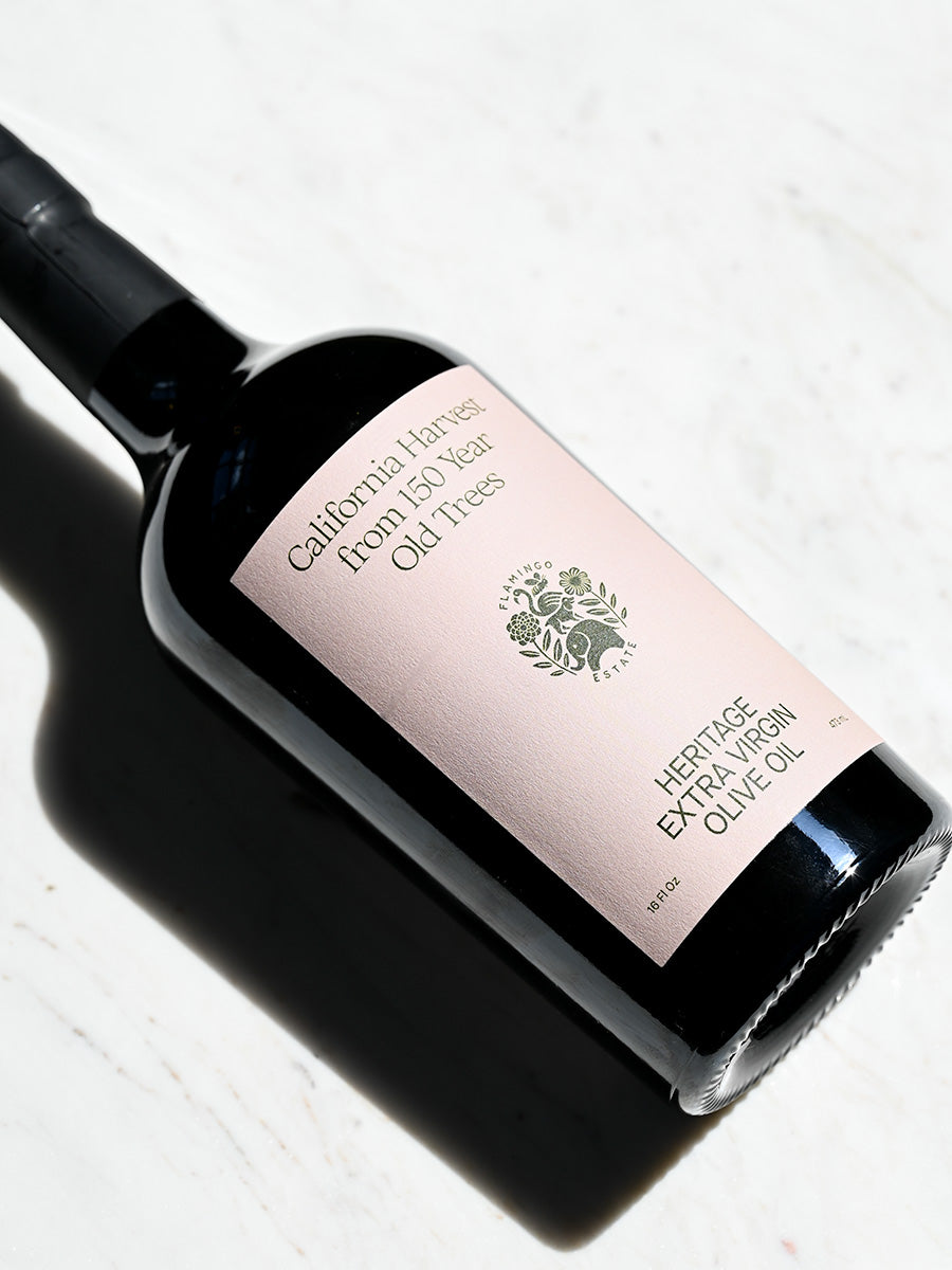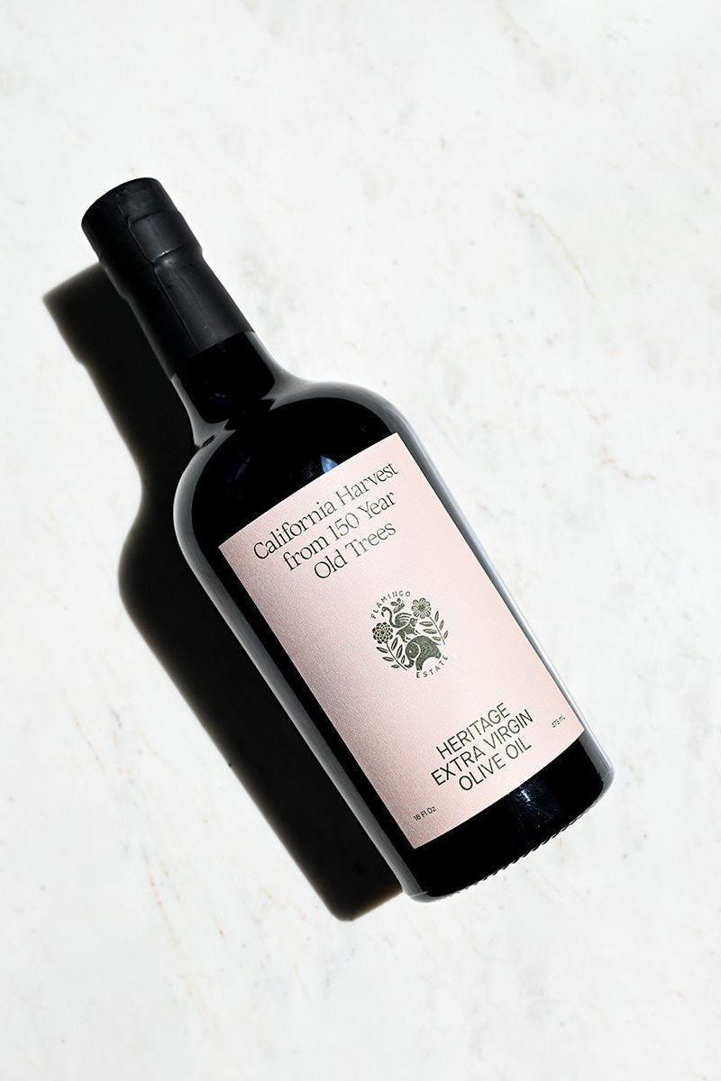 These trees can’t be harvested with machines because the fruit will bruise. This makes the harvest slower but intentional, and the Olive Oil has a lot of complexity and nuance. During harvest, the Olives are picked by hand and pressed immediately. 2023 was a year of abundant Winter rain, mild Spring winds, and warm Summer sunshine in California. These unique weather patterns produced a lush crop of Olives, and we are proud to offer our Heritage Olive Oil as a celebration of this Fall harvest. It’s made from a special blend of Olives grown in Ojai, California on a fourth-generation family farm.