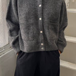 The Amélie Alpaca Cardigan is a fresh take on the classic cardigan, crafted from a soft alpaca-wool blend for a cozy yet refined feel. Designed with natural shell buttons and two front pockets, it combines functionality with style. Its slightly oversized silhouette and balloon sleeves provide a relaxed, comfortable fit while maintaining an elegant appearance.