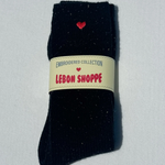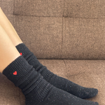 A cold-weather staple with a touch of charm. Made from an ultra-warm wool blend with the same fit and feel as our Snow Socks, and finished with a tiny embroidered heart for just the right hint of cozy and cute. Wear them long or scrunched for that perfectly lived-in feel.