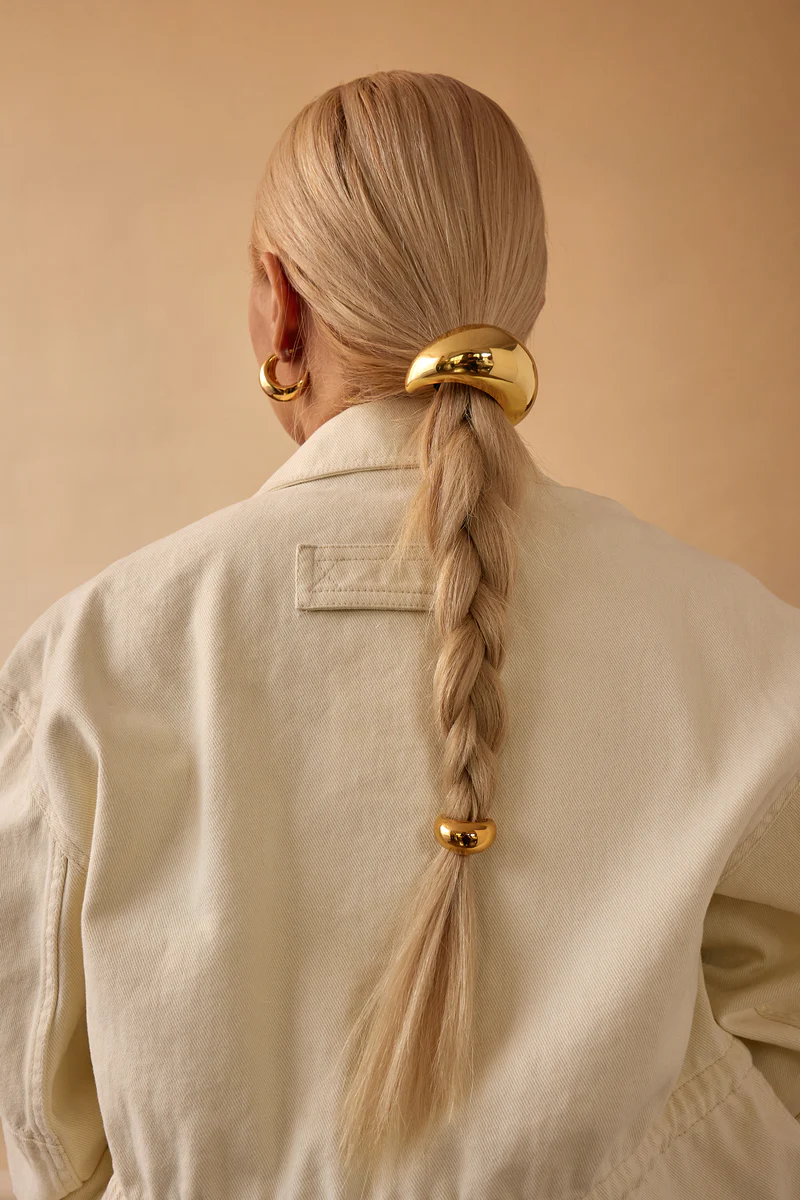 The best-selling Glossy Dome, recreated into a mini pony cuff. This mini pony cuff is a perfect hair accessory to finish off the end of a braid, the bottom of a bubble pony, or a great option for thin hair. Crafted with a discreet elastic for a "no show" look.