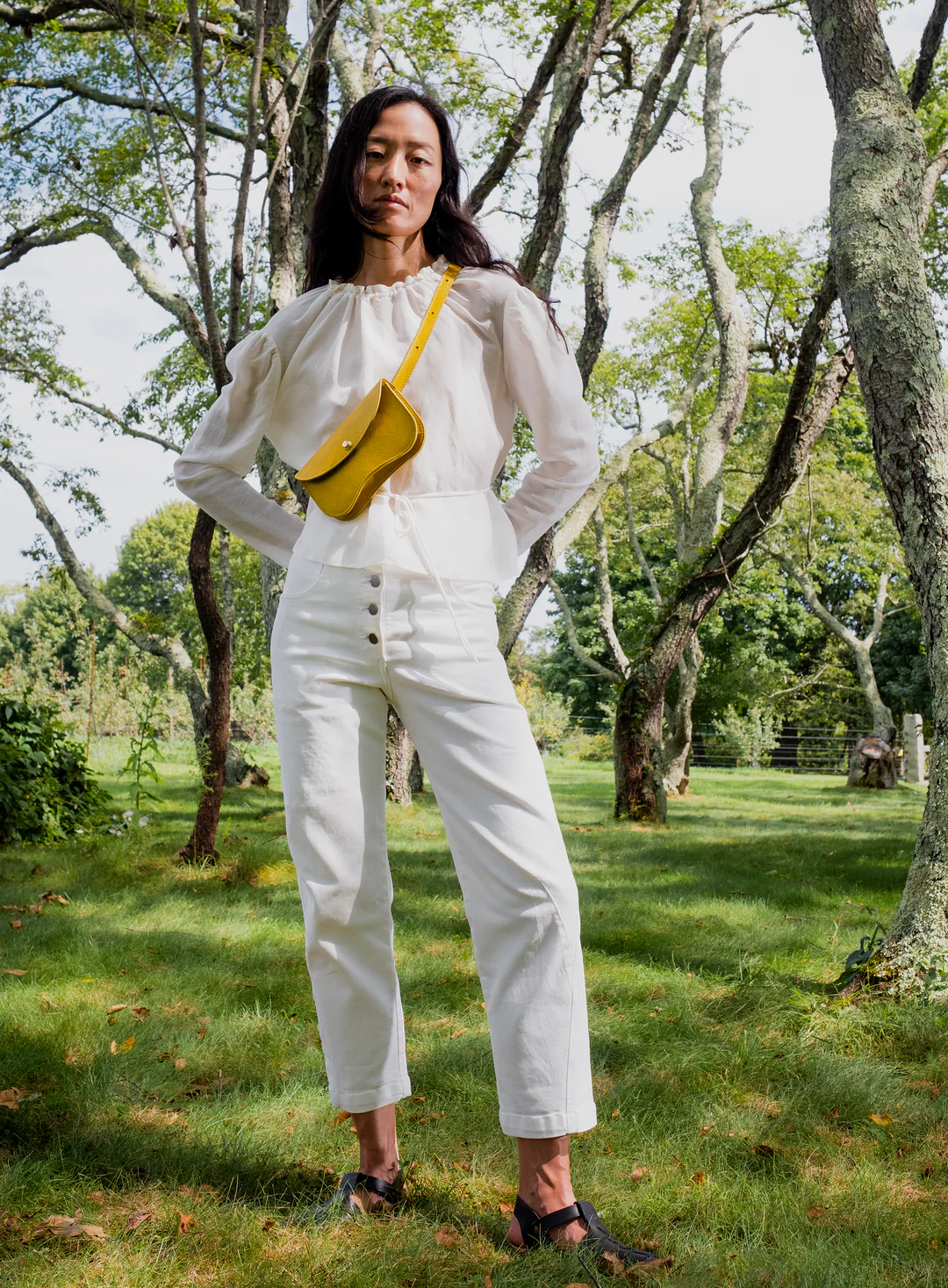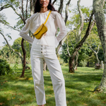 Our bag is as fresh and versatile as its namesake, and can be worn either on the waist or across the chest. The Faba features a brass pull release closure, and has an interior partition and credit card pocket with our signature curve to organize your essentials. It is lithe and light enough to accompany you everywhere.