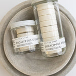 Place one or two rounds in the shower in the direct stream of water. As the round(s) get wet, they begin to dissolve and release potent essential oils into the hot shower steam, giving you several minutes of refreshing, eucalyptus steam-filled air.