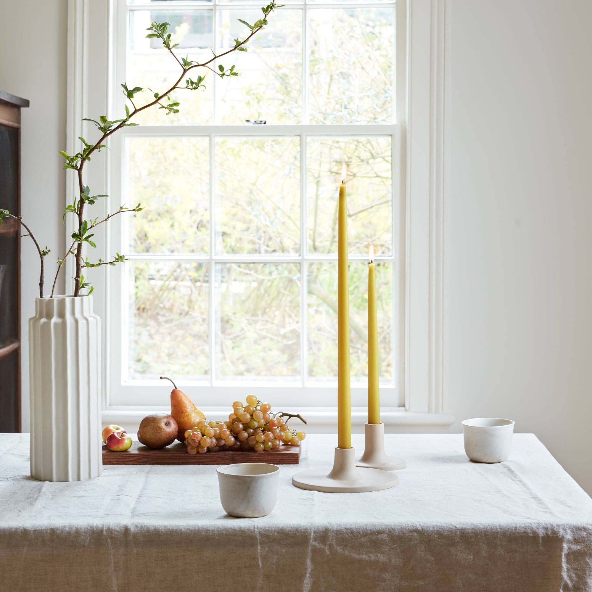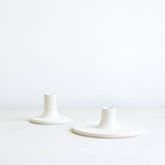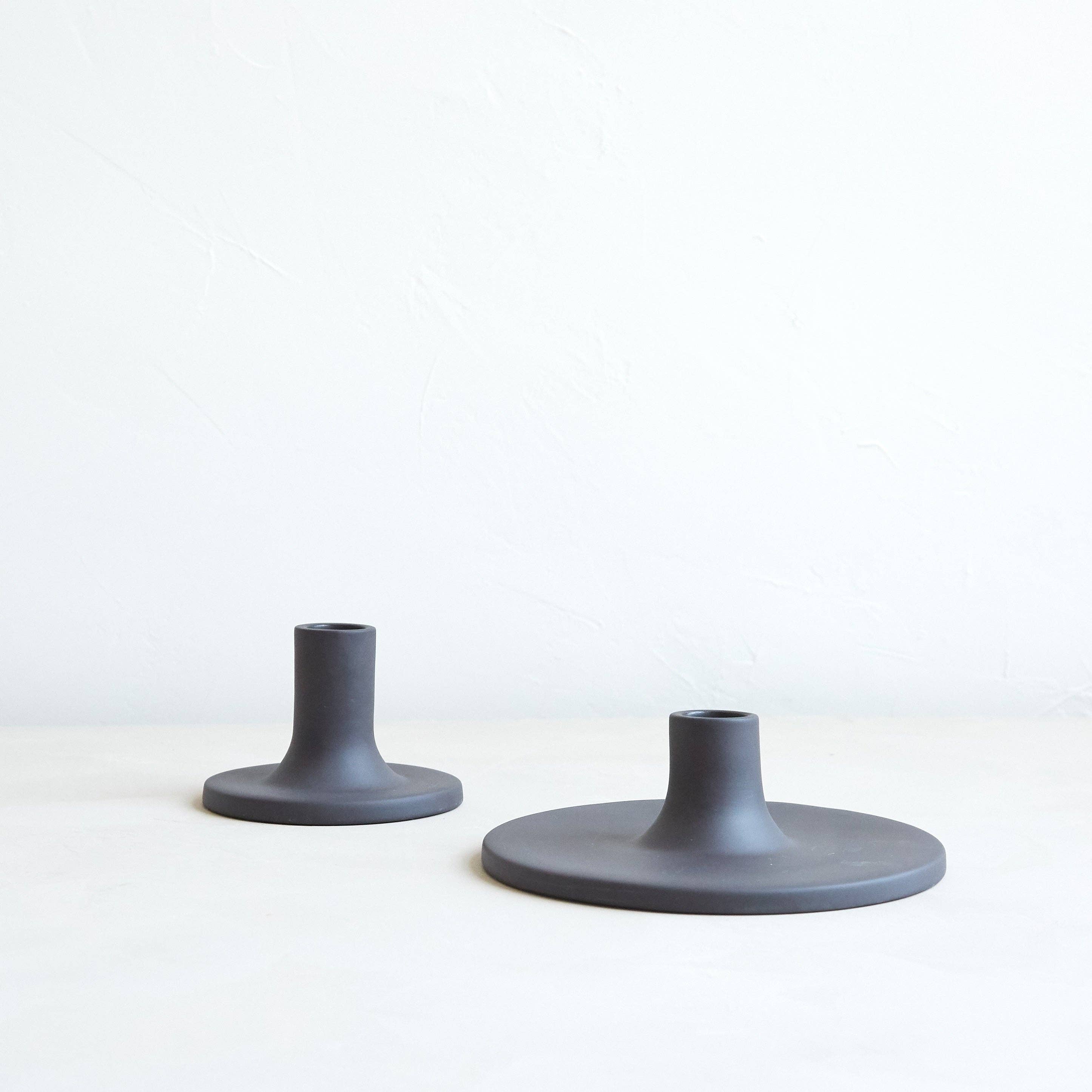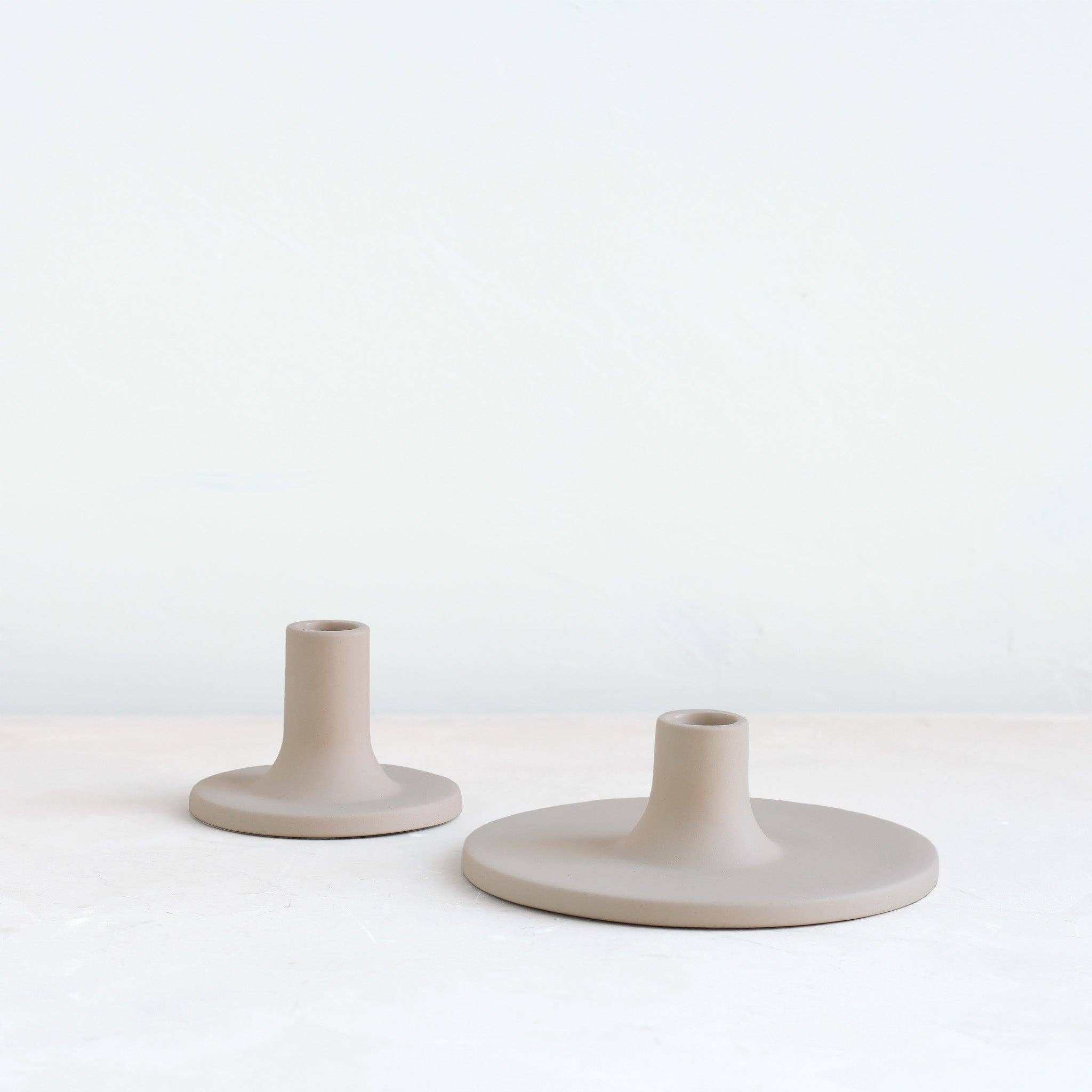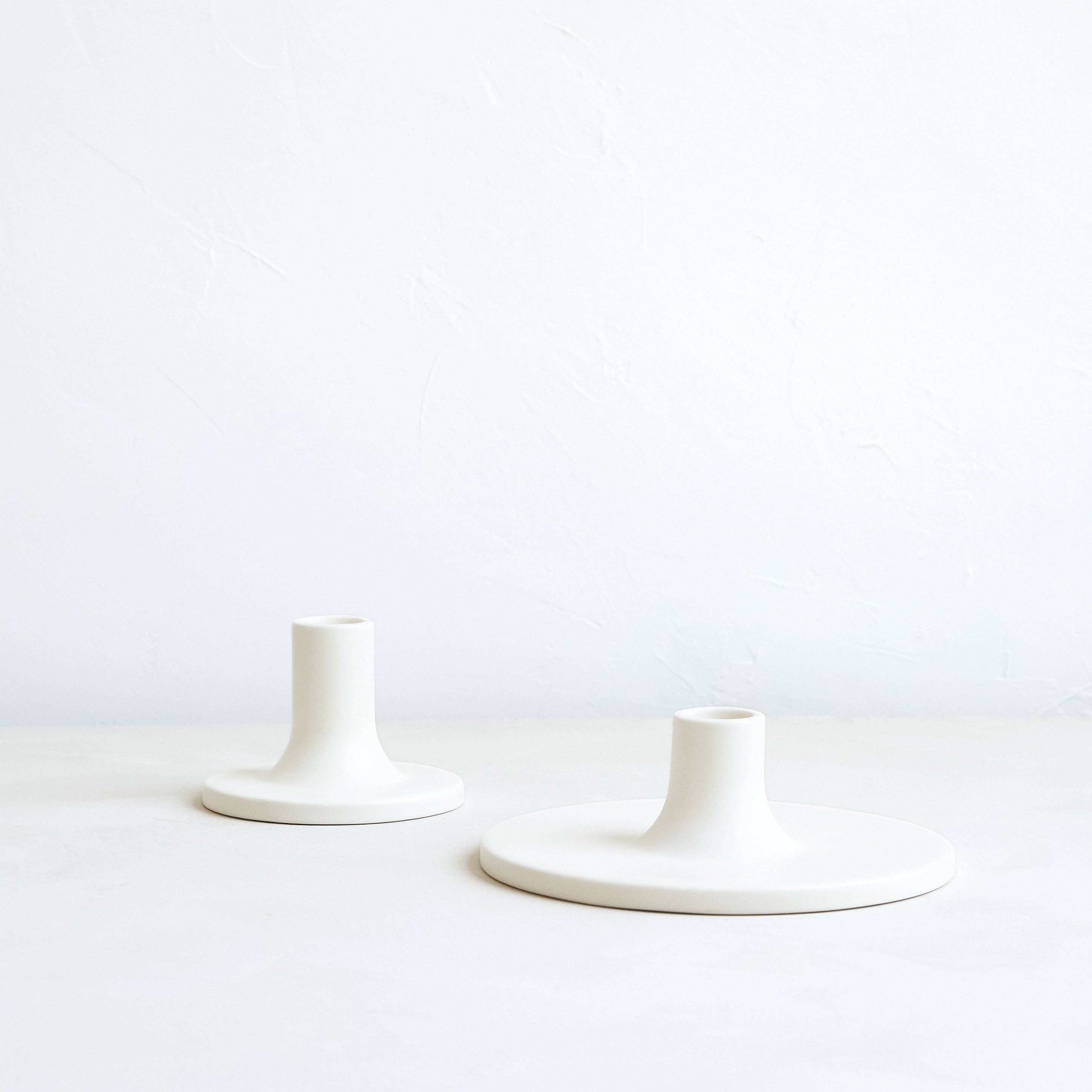 Our Daily ceramic taper holders offer a fresh variation in shape and size and boast a clean, matte-earth finish. With stand-alone appeal, they also feel dynamic as a collection. Each holder is sized to fit a standard taper candle.