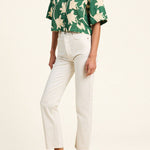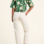 The Thia Shirt is our elevated camp shirt, with a slightly cropped body, short sleeves and a hand-crocheted collar trimmed with a cobalt striped border. Shown here in Madalena Floral and made from linen.